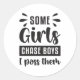 Einige Mädchen jagen Jungs, die ich am Schwimmbad Runder Aufkleber