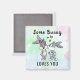 Ein benutzerdefinierter Kühlschrank-Magnet mit dem Text "Einige sonnige Lieben Sie" und einem Bild von zwei Lieben Kaninchen Set vor einem pastellfarbenen Hintergrund.