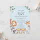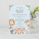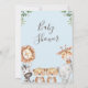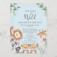 Twin Boys Safari Two Little Wild Ones Baby Shower Einladung Safari Babydusche Einladung für zwei Jungen mit sechs niedlichen Dschungeltieren und etwas Blattwerk auf blauem Hintergrund.
