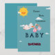 Feiern Sie Ihre Zwillinge mit dieser süßen Storch-Baby-Party-Einladung für einen Jungen und ein Mädchen