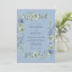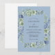 Dieses Design verfügt über eine ruhige Farbpalette aus weichem Kornblumenblau und Salbeigrün, die eine romantische und luftige Atmosphäre schafft. Zarte Aquarellrosen und üppige Hortensien sind kunstvoll im gesamten Arrangement verteilt, ergänzt durch zarte Blätter und Zweige. Die malerischen Texturen und gedämpften Töne rufen ein Gefühl zeitloser Eleganz für ein botanisches Ereignis hervor.