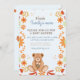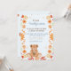 Diese Babydusche aus der Kollektion "Bundle of Joy Essentials" besticht durch ein reizvolles, im Herbst inspiriertes Design. In der Mitte befindet sich ein liebenswerter Teddybär mit einem Bouquet, umgeben von einer lebhaften Blumengrenze in warmen Farbtönen Orange, Gelb und Rot. Das Design verbindet Charme und Eleganz und bietet Platz für die Personalisierung wichtiger Veranstaltungsdetails wie Datum, Uhrzeit, Ort und UAWG. Ideal, um die Ankunft eines neuen Babys zu feiern, bringt diese Einladung Wärme und Freude in Ihre besondere Ansammlung.