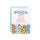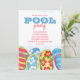 Dieses Design bietet modernes, einfaches Aquarellbecken-Party, minimalistisch whimsical Sommerschwimmen, tropischen Strand Splish splash, Strand Hawaiian luau flip Flops, stilvolle trendige Kalligraphie Drehbuch, Wasserrutsche Spaß draußen, ideal für Mädchen Geburtstag rustikal lustige, kühne Typografie GRILLEN Hinterhof, niedlich rot, blau, gelb, cocktail Erwachsenen Kinder zwischen