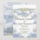 Sind Sie freie Geister, die gerne draußen sind, wo sie zu den Wolken aufsteigen und die Aussicht von Berggipfeln genießen können? Diese Einladung zeigt einen Berg, der über den Wolken aufragt. Er ist mit Wasserfarben gemalt und mit Grafikdesign ergänzt. Die Farben sind subtile Blautöne, Grün und Grau. Wenn Sie gerne wandern, campen, klettern oder in der Natur sind, spiegelt dieses Design Ihre Wünsche wider.