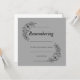 "Ein feierliches und respektvolles Begräbniseinladungs-Set vor einem gedämpften grauen Hintergrund. Elegante, schwarze Blume schmücken die Ränder und verstärken den düsteren Ton. Der Text, in einem formellen Schriftart geschrieben, vermittelt die Details des Dienstes mit Anmut und Einfachheit, unter Anerkennung der Erinnerung an die Verstorbenen. Diese Einladung soll die Schwere des Ereignisses widerspiegeln, mit unterstrichenen, aber nachdenklichen Details, die ein Gefühl von Reflexion und Erinnerung wecken."