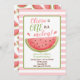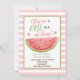 Eine in einer Melone Geburtstagseinladung zu einer Wassermelone Erstgeburtsfeier! Enthält eine süß rosa und grüne Aquarellon-Abbildung. © 2021 Tea Olive Co.