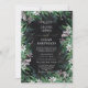 Elegante Landstriche mit Blumen, Aquarellfarben und botanische Blume, die einen hübschen Schriftart umrahmen. Pinks, Grüntöne, Weiße, vor kohlefarbenem Hintergrund, perfekt für eine Hochzeit im Sommer. Rustikales Sommergarten-Design.