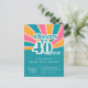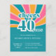 Fügen Sie Ihrer 40. Geburtstagsfeier mit diesen lustigen und koketten Einladungen eine strahlend inspirierte Atmosphäre hinzu. Einfach mit allen Party-Details anpassen. Vintage, klobige Schrift mit farbenprächtigem blau, gelb und rosa Hintergrund mit dem Text: "Juers to 40 years".