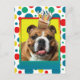 Laden Sie Ihre Gäste mit dieser skurrilen Bulldog Grußkarte ein. Mit einem Kuchen auf dem Kopf wird dieses Design sicher ein Lächeln und ein Giggles bringen! BTW, Dieses Design hat mehrere Versionen, mit verschiedenen Hintergrundfarben. Es gibt auch eine Happy Birthday Version.