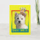 Laden Sie Ihre Gäste mit dieser skurrilen West Highland Terrier Dog Grußkarte ein. Mit einem Kuchen auf dem Kopf wird dieses Design sicher ein Lächeln und ein Giggles bringen! BTW, Dieses Design hat mehrere Versionen, mit verschiedenen Hintergrundfarben. Es gibt auch eine Happy Birthday Version.