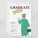 Abschluss Einladung für Typ Abschlussfeier. Männliches Portrait zeichnend Absolvent in grüner Kappe und Ziegen, rotes Haar und Gold 2023 Ballons. Personalisieren Sie alle Party-Details Ihres Abschlusses für eine einmalige Abschluss-Einladung.