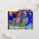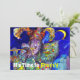 Farbenfrohe, skurrile und lebendige Aquarellmalerei in leuchtend roten, blauen, grünen, goldgelben, rosa, fuchsienfarbenen, die vom Karneval von Venedig und der Commedia dell'Arte inspiriert wurden. Ein ausdrucksstarker Flötenspieler in der Nacht , Mondlicht und eine blaue Katze. Dieses coole und künstlerische Design ist auch ein wunderschönes Geschenk für besondere Anlässe, Geburtstage, Hochzeiten, Weihnachten, Ferien, Mardi Gras, Karnevalssaison.