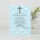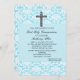 Beginnen Sie Ihren Feiertag mit dieser eleganten und doch tanzenden Einladung für die besondere Jungen Heilige Kommunion. Er hat einen blauen Damast auf der Oberseite und die Unterseite der Einladung. Oben in der Mitte befindet sich ein schwarz-weißes Damast-Kreuz. Karo die vielen anderen Artikel in dieser Zeile, wie Etiketten, Porto, Dankeschön Notizen, und mehr.