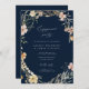 Unsere Einladungskarte für die Verlobung bietet extravagante moderne Kalligraphie und einen boho-Wildblume-Kranz - ideal, um Gäste zu Ihrer Verlobungsfeier einzuladen.