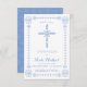 Diese elegante und klassische Einladung zur Bestätigung bietet ein gezeichnet Kreuz aus Blues und Weiß mit einem passenden Rahmen. Ideal für besondere religiöse Anlässe, die Text- und Hintergrundfarbe kann nach Ihren Wünschen angepasst werden.