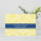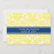 Graduation Party Einladung individuelle Karte in eleganten und raffinierten hellen Zitronengelb, dunkelblau und weiß klassischen Vintagen Blütenstaub Muster. Passen Sie diese Akademie-Ankündigungskarte an, indem Sie das Jahr Ihres Abschlusses und Ihre Graduiertenparty-Details hinzufügen.