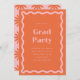 Die Einladungen zur Graduierung sind in einer fett orangefarbenen Farbe mit einem hellrosa Farbton gehalten, wodurch eine lebendige und spielerische Ästhetik entsteht. Die Retro-Wave-Grenze fügt eine Touch Nostalgie hinzu und fügt dem Design ein lustiges und einzigartiges Element hinzu. Die Einladungen sind in verschiedenen Farbvarianten erhältlich und bieten Ihnen die Flexibilität, einen zusammenhängenden Look für Ihren besonderen Tag zu schaffen.