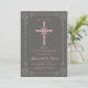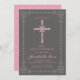 Diese elegante und klassische erste heilige Kommunion-Einladung besticht durch ein gezeichnet Kreuz aus Rosa und Weiß mit einem passenden Rahmen. Ideal für den besonderen religiösen Anlass Ihres Mädchens, kann die Text- und Hintergrundfarbe an Ihre Wünsche angepasst werden.