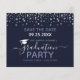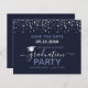 Elegante silberne Konfetti-Highlights an der oberen und unteren Grenze. Alle Texte sind individuell einstellbar und lassen sich für Ihr eigenes Party leicht ändern. Großartiges, elegantes Vorlagendesign aus Save the Date Abschluss. Hochschule oder Uni.