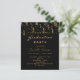 Eine moderne und stilvolle Einladung zu einer Abschlussfeier. Für ihn und sie. Die Einrichtung ist klassisch, schwarz und mit goldfarbenem und schwarzem Party gehalten. Personalisieren und fügen Sie einen Namen und Party-Details hinzu. Der Text-Abschluss und der Name werden mit einem modernen Stilskript geschrieben. Goldene Buchstaben.