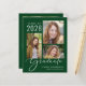 Eine preisgünstige Ankündigung und Party Einladung des grünen Abschlusses mit einer 3-Foto-Collage und "Graduate" in einer weißen Schriftzeichen und dem Namen, dem Klassenjahr und der Schule oder Universität in schlichter, moderner weißer Typografie. Auf der Rückseite fügen Sie ein zusätzliches Foto und die Details der Graduierungsparty hinzu.