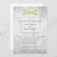 Beginnen Sie Ihre Gäste mit dieser Hochzeitsfeier im grünen Drachenflieger, die für Hochzeitsthemen der Libellenfliege konzipiert wurde. Dieses exquisite Design besticht durch ein zartes Libellenfliege-Set vor einem texturierten Hintergrund, das elegante Schrift und moderne Typografie für eine anspruchsvolle Touch kombiniert. Ideal für Braut und Bräutigam, die einfache Anordnung hebt Ihre Hochzeitsdetails schön hervor. Diese auf hochwertigen, Öko-freundlichen Karotten gedruckte Einladung eignet sich ideal für Libellenhochzeit. Ideal für Paare, die ein Libelle-Hochzeitsthema haben.