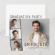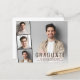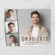 Die kostengünstige minimale Ankündigung und Party Einladung des modernen Abschlusses mit dem Foto des Absolventen überlagert mit einem Streifen von drei kleineren quadratischen Fotos und "Graduate", ihren Namen, Schule und Klassenzimmer in einfacher Typografie. Fügen Sie die Details der Graduierungspartei auf der Rückseite hinzu.