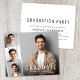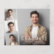 Die preisgünstige Ankündigung und Party Einladung des modernen Abschlusses mit dem Foto des Absolventen, überlagert mit einem Streifen von drei kleineren quadratischen Fotos und "Graduate", ihren Namen, Schule und Klassenjahr in schlicht weißer Typografie. Fügen Sie die Party-Details auf der Rückseite hinzu.