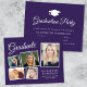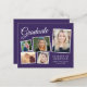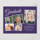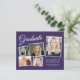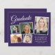 Moderne, preisgünstige lila Abschlussfeier mit einer Postcard mit 5 Fotos-Collage, "Graduate" in einer eleganten, weißen Schrift und dem Namen, der Schule und dem Klassenjahr in schlicht weißer Typografie. Fügen Sie Ihre Party-Details auf der Rückseite hinzu. Dieses halbglänzende Haushaltspapier ist gewichtsähnlich wie Foto. Es ist auch eine größere 12x18-Kartenversion verfügbar (für den Link die Meldung).