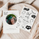 Funky Graduation Party Einladungskarte mit handgezeichneter Illustration von Abschluss- und Schulsymbolen.