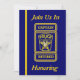 Diese blaue und goldene Einladung ist auf der Vorderseite mit dem Logo des Polizeikapitän für das Abzeichen dekoriert. Sie können diese Karte anpassen, indem Sie Ihre Daten in die dafür vorgesehenen Felder eingeben. Sie können auch das Abzeichen auf der Vorder- und Rückseite mit dem Namen der Ehrenfrau anpassen.