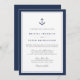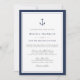 Unsere eleganten Hochzeitseinladungen bieten klassische nautische Stilelemente mit einem sauberen, minimalistischen Look. Das Design weist einen doppelten Rand von reich marineblau auf, wobei oben die Ankerabbildungen des Schiffes angezeigt werden. Elegante Blockschrift und Skriptschrift in weichem Grau und passendem Marineblau vervollständigen das Aussehen. Ideal für Yachtklub, Boot, Strandurlaub oder Hochzeiten im Sommer. Brauchen Sie Hilfe bei der Formulierung von Hochzeitsanträgen oder bei der Anpassung? Kontaktieren Sie mich über den Link "Diesen Designer Gefragt" auf dieser Seite.