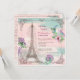 Ein Vintager Rahmen mit Blume und dem Eiffelturm verleiht dieser romantischen, femininen und reizenden Einladung perfekt für Brautpartys, Geburtstagsfeiern, Jubiläumsfeiern und vieles mehr. (Fp)