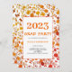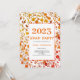 2023 Abschlussfeier Einladung mit Retro-Blumenmuster. Orange Blumen und Text. Einfache Änderung der Informationen von der Produktseite.