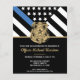 Ehre den Einsatz und die harte Arbeit eines neuen Strafverfolgungsbeamten mit dieser anpassbaren Einladung des Abschlusses. Dieses Design mit einem polizeilichen Abzeichen und einer Polizeifahne mit fett schwarz-weiß Streifen und einer stolzen blauen Linie symbolisiert Stärke, Service und Opfer. Die Einladung ist personalisiert mit dem Namen des Absolventen in Goldschrift, was es zu einem unvergesslichen Sake für Freunde, Familie und Kollegen macht. Ideal, um einen Abschluss, eine Werbeaktion oder einen Meilenstein in der Karriere eines zukünftigen Offiziers zu feiern. Laden Sie Ihre Gäste stilvoll ein und zeigen Sie Unterstützung für das neueste Mitglied der Thin Blue Line Community.