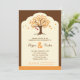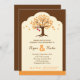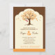 Moderne und elegante Einladung zu einer Party, ideal für Herbst- oder Herbstveranstaltung. Ein Baum mit Blätter in kräftigen Farben und zwei Herzen hängt davon, um die Braut und Bräutigam zu symbolisieren. Ein robuster Farbrahmen rundet dieses angenehme Design ab. Fügen Sie Ihre eigene Formulierung hinzu.