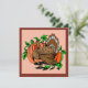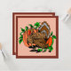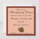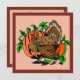 Erntedank Einladung illustrierter Truthahn stehend aus einem Kürbis mit Weinreben.