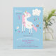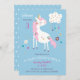 Diese herzliche Geburtstagsparty-Einladung zeigt einen niedlichen Einhorncharakter und andere skurrile Elemente wie eine Wolke, Blume und Sterne. Das festliche Design ist ideal für ein Party mit einem Unicorn-Thema. Diese trendige Karte ist perfekt für ein junges und glückliches Kind.
