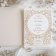 Unsere verzauberte Pfauenhochzeit-Einladung ist eine künstlerische Ode an ehelichen Glückseligkeit, die Tradition mit einer Touch von Launen vermischt. In einem warmen Sepia-Ton präsentiert sich die Einladung mit einer symmetrischen Darstellung der Pfau-Konturen, die sich anmutig entfalten und zu einem romantischen Bogengang werden. Dieses monochrome Design, das an ein klassisches Ätzen erinnert, schafft eine zarte, aber kühne Aussage. Unten wird der Text, der Gäste einlädt, an Ihrer Freude teilzunehmen, von einer Garage mit Blumen und Früchten gerahmt, was auf Überfluss und Fruchtbarkeit hindeutet. Diese Einladung Set die Bühne für eine Hochzeit voller Eleganz, Charme und einem Hauch von Vintagem Reiz.