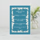 Diese elegante Einladung aus weißer Lilie lädt zu einer schönen, ruhigen Hochzeit ein. Die zarten Lilien schaffen eine romantische und zeitlose Grenze, während der aquamarine Hintergrund eine Touch der Eleganz verleiht. Passen Sie diese Einladung mit Ihren Hochzeitsdetails für eine wirklich personalisierte Touch an. Ideal für eine Hochzeit im Frühling oder Sommer.