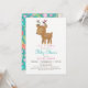 Woodland Hirsche Mädchen Blumenbaby Dusche Einladung. Die Blume sind in Rosa, Türkis, Orange und Grün gehalten.