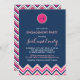 Gemütliche marineblaue Einladung mit rosa-weißem Zickzackmuster. Zickzack Muster unten und ein vollständiges Muster auf der Kartenrückseite. Ein einfaches und minimales Design für Ihren besonderen Tag. Passen Sie den Wortlaut für jede Gelegenheit wie Babydusche, Brautparty, Hochzeit, süße 16, Abschluss, Geburtstagsparty, Verlobungsfeier, Junggeselinnen-Abschied und mehr an.