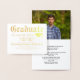 Traditioneller alter Stil englische Schriftart Typografie Foto Uni-Abschluss Announcement Card Einladung in horizontaler Ausrichtung. Wunderschönes Blattgold, mit dem Logo der Mörtel-Graduierung. Wunderbar und klassisch gut für männliche Absolventen. Moderne, hoch entwickelte Ankündigung von Abschlüssen ist ideal für Absolventen der Uni oder für Gymnasiasten. Formal Classic Elegantes Design mit prächtigen Blockschrift für Schriftart. Sehr günstige Möglichkeit, offizielle Schulankündigungen zu erhalten. Formeller bis klassischer Abschluss, geeignet für jeden, ob Graduate, Fachschule, Krankenpflege, Medizin oder Jurastudium.