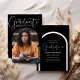 Geben Sie Ihrem Absolventen die Feier, die sie verdienen, mit unseren modernen minimalistischen Abschlussfeiern Einladungen. Mit einem schlichten Bogengewölbe, Foto- und Klassendetails und einer leicht anpassbaren Vorlage auf der Rückseite. Machen Sie es persönlicher, indem Sie die Stile, Größen und Farben des Schriftartes anpassen. Ideal, um das Rampenlicht auf den Spieler zu lenken.