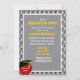 Feiern Sie den Abschluss der Lehrerin mit dieser schwarz-grauen Einladung mit einem roten Apfel, der eine Graduationskappe trägt. Fügen Sie Ihre Party-Details zu einer freundlichen Einladung für den stolzen Absolventen hinzu.