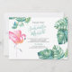 Lassen Sie sich von der tropischen Vegetation und dem Rosa-Flamingo-Empfang-Dinner-Einladung-Design ergänzen Ihre Veranstaltungsdetails mit einem üppig bemalten Aquarellmonstera-Palmenblatt-Grüntöne. Eine botanische und raffinierte Wahl für das Empfang-Dinner im Hinterhof Tisis Party in Florida, den Florida Keys oder Key West, von Victoria Rigali Designs. Weitere Einladungen zur Hochzeit in Florida finden Sie unter www.zazzle.com/dotellabelle