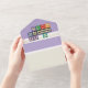 Diese wissenschaftliche Einladung mit herausnehmbarer RSVP-Karte bietet einen Hintergrund vereinfachter Feynman-Diagramme in blasser lila auf einer lila Basis. Auf diesem Muster sind Cremeplatten mit einer weißen Linie angeordnet, um den Eindruck eines Baseboards am Ende einer Wand zu erhalten. Diese bilden eine Basis für Mustertexte im Inneren, die für Ihre Veranstaltung angepasst werden können, und einen Leerraum im Außenbereich, der für die Kartenadressierung an den Empfänger und den rückgabefähigen Bereich mit der entsprechenden Rücksendeadresse verwendet werden kann. Schließlich sitzt ein physikalisch thematisches Set aus Holzalphabetensteinen mit Newtons universellem Gravitation-Gesetz auf der Klappe über dem Text und auf der Rückseite beim Schließen. Um die Elemente der Formel herum sind Blöcke mit einem Teleskop, einer Glühbirne und einem Set Newton-Kugeln, um einige der verschiedenen Konzepte und Fachgebiete der Physik zu präsentieren. Karo in der gesamten Future Physiker's Blocks Kollektion für weitere tolle Geschenke und Produkte für eine Babydusche oder die kleine Dusche in deinem Leben.