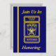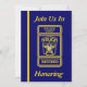 Diese Blu- und Goldeinladung ist auf der Vorderseite mit dem Logo des Polizeichefs für das Abzeichen dekoriert. Sie können diese Karte anpassen, indem Sie Ihre Daten in die dafür vorgesehenen Felder eingeben. Sie können auch das Abzeichen auf der Vorder- und Rückseite mit dem Namen der Ehrenfrau anpassen.