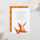 Tropische, orangefarbene, paradiesische Einladung für eine Geburtstagsfeier oder jede Veranstaltung. Auf Kraftpapier dargestellt, wird der Text in Absatz-Form eingefügt. Es ist Ihre Wahl, wohin die Linien und Räume gehen. Ein großer Single schmückt die Vorderseite mit einem Muster von Blume auf der Rückseite. Lass nicht, dass deine Formulierung zu nah an den Rändern wird.