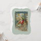 Hier kommt der Weihnachtsmann! Er lenkt seine phantastische Flugmaschine durch den Nachthimmel. Sterne, Raster und extravagante Dekorationen bedecken das Flugzeug und seine Ladung an wunderschönen Spielzeugen für den Weihnachtsmorgen. Das restaurierte Bild einer Viktorianischen Postkarte weist einen frostigen Hintergrund, goldene Akzente und schöne, helle Farben auf. Es ist gerahmt in Ziern und Ziergegenständen mit einem Weihnachtsdorf im Hintergrund.